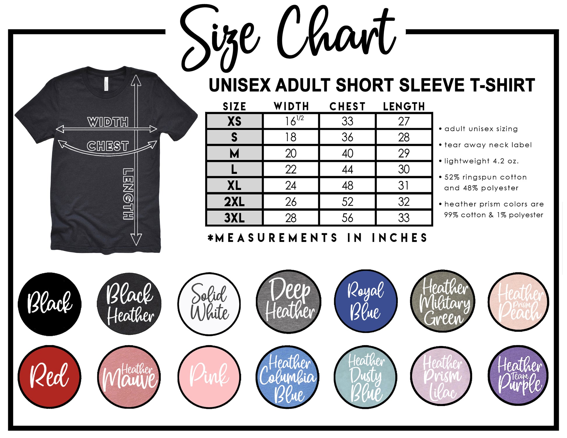 - All of our t-shirts are UNISEX fit, and they are a nice lightweight shirt made with 52/48 blend of airlume combed and ringspun cotton & polyester. Heather PRISM shirts are 99/1 cotton/polyester. (They have unique coloring, gray flecks of Heather pulled through the base color. )