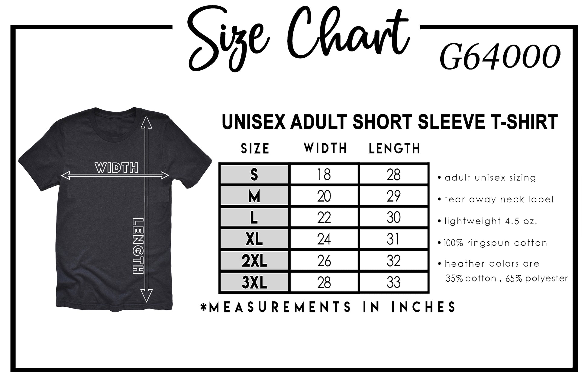 - Adult Unisex t-shirts will be made on nice and soft 4.5 oz., pre-shrunk 100% combed ring spun cotton shirts